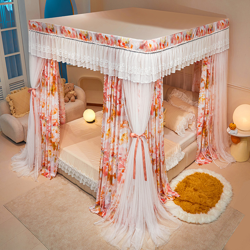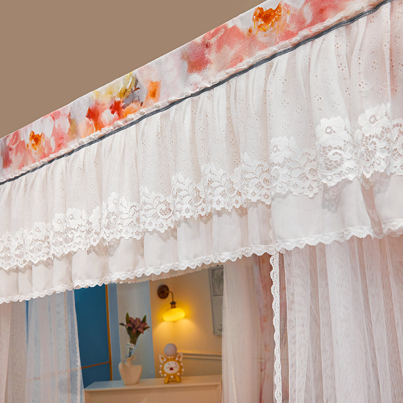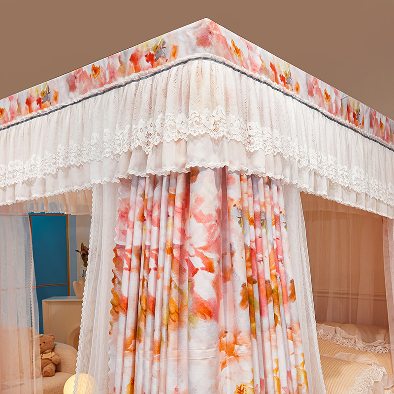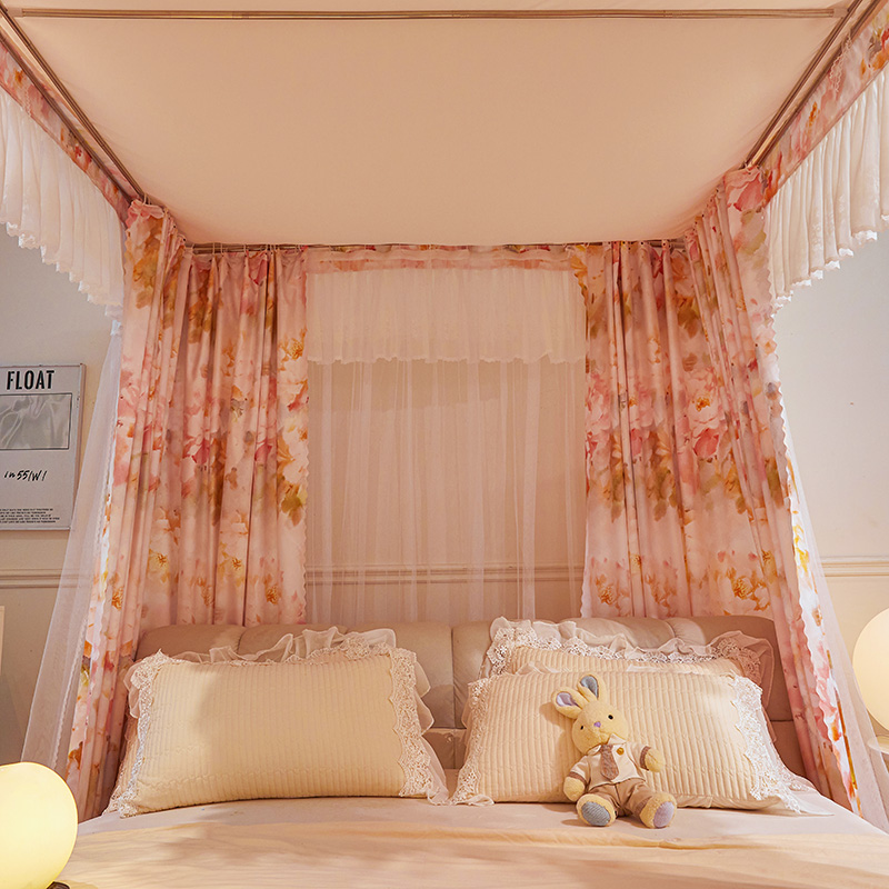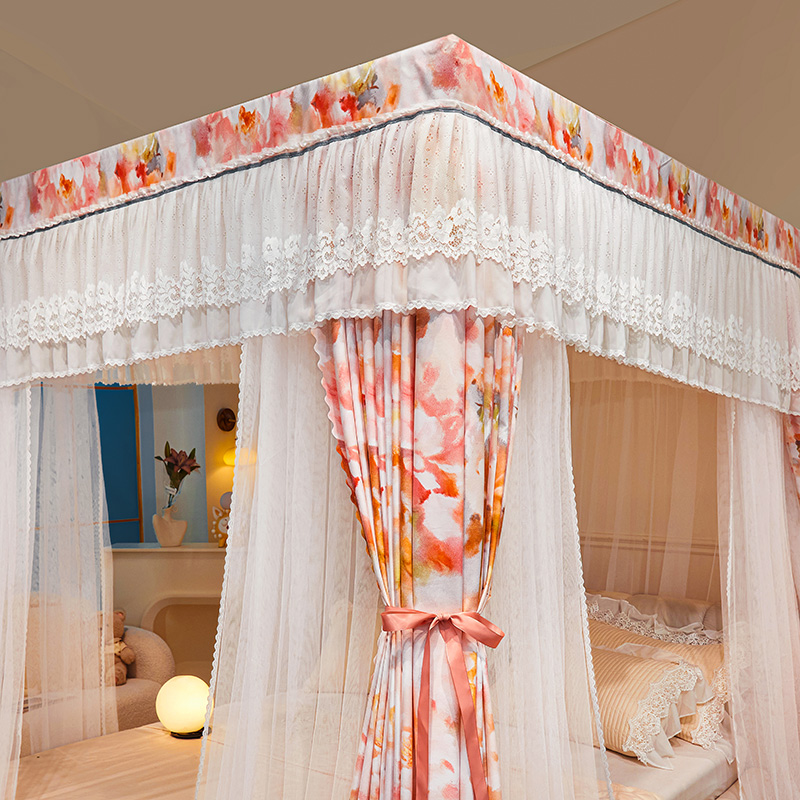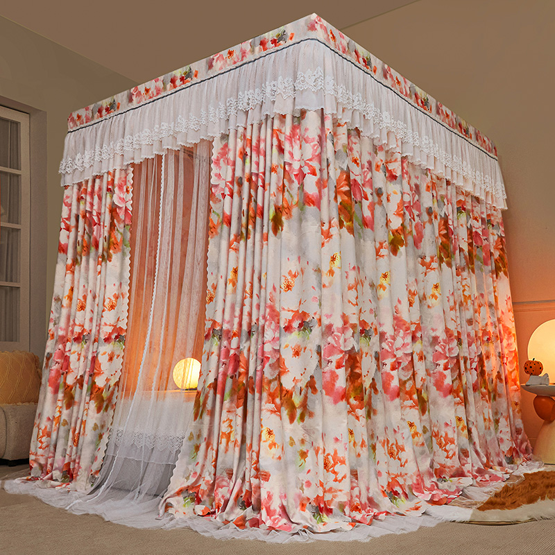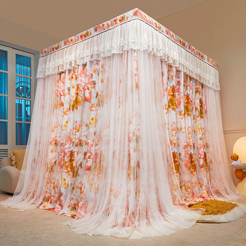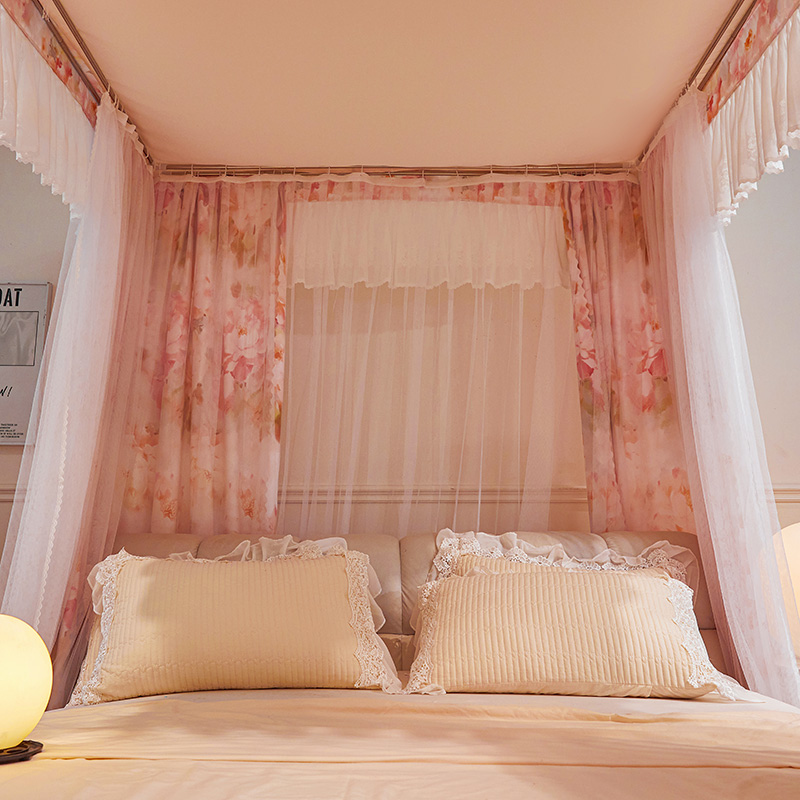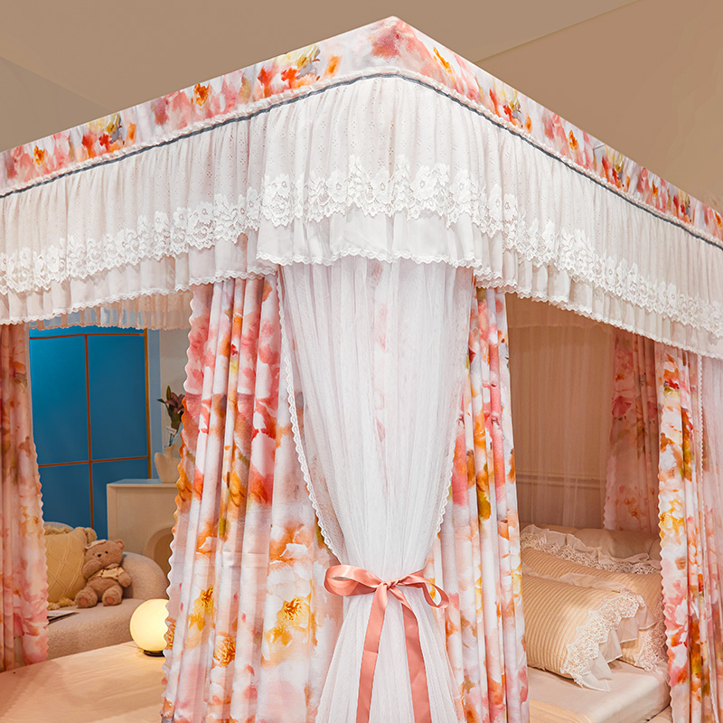 2024新款双杆五通印花落地布帘蚊帐
