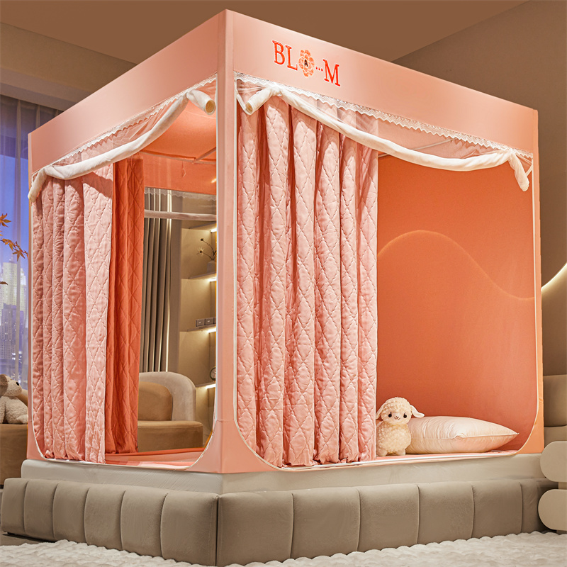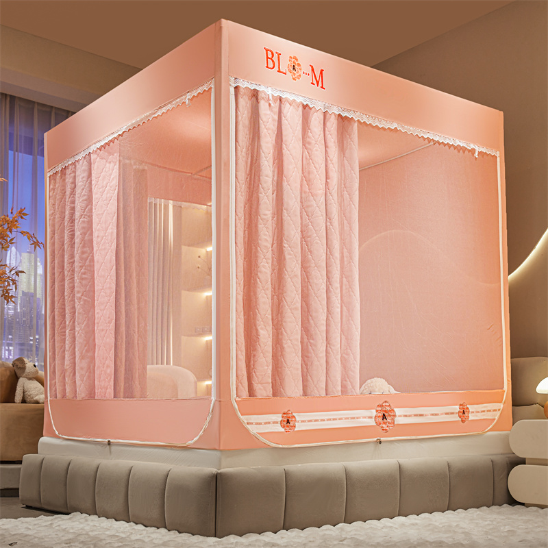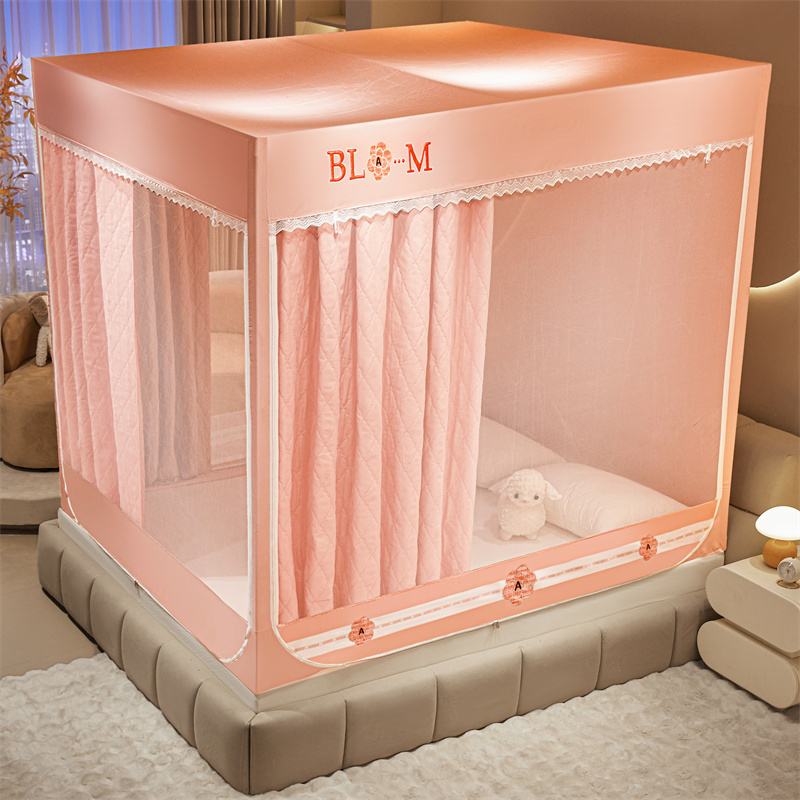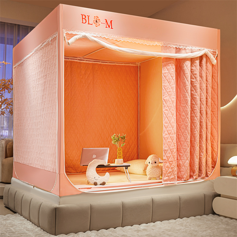 2025新款冬季防摔保暖蚊帐坐式夹棉蚊帐坐床纯色床帘蚊帐