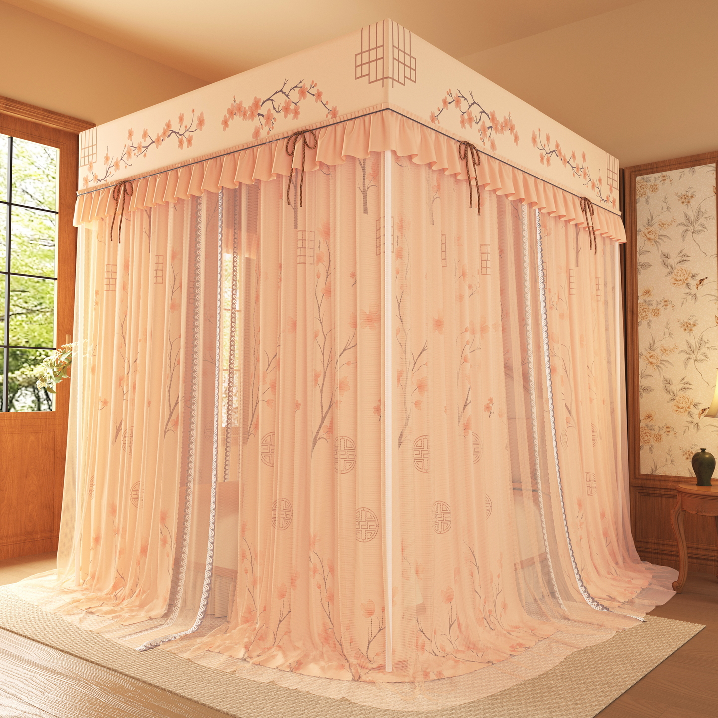 2025新款新中风双层双杆5面遮光落地宫廷蚊帐